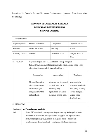 Lampiran 4. Contoh Format Rencana Pelaksanaan Layanan Bimbingan dan
