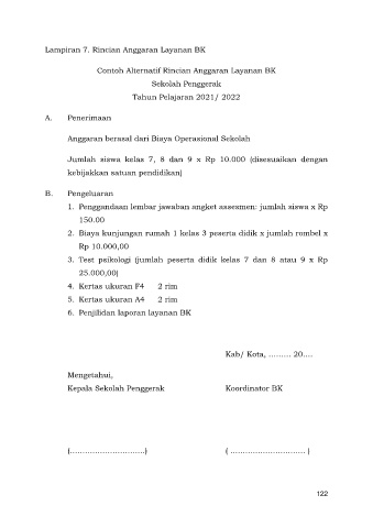 Contoh Alternatif Rincian Anggaran Layanan BK