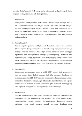 peserta didik/konseli SMP yang perlu dipahami meliputi aspek fisik,
