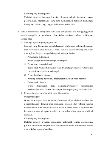 2. Tahap akomodasi: menyadari hak dan kewajiban serta tanggung jawab