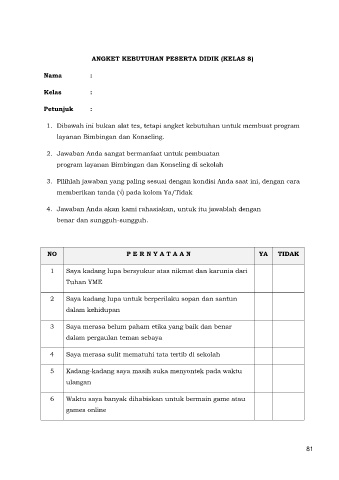 ANGKET KEBUTUHAN PESERTA DIDIK (KELAS 8)