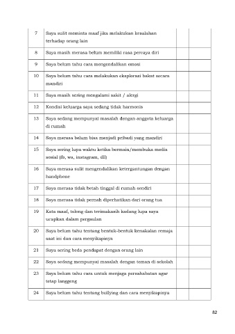 7 Saya sulit meminta maaf jika melakukan kesalahan