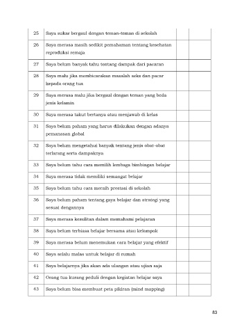 25 Saya sukar bergaul dengan teman-teman di sekolah