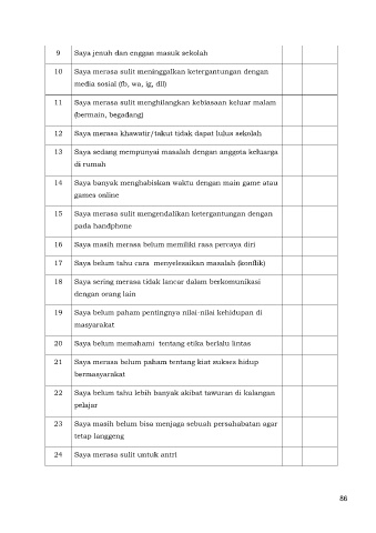 19 Saya belum paham pentingnya nilai-nilai kehidupan di