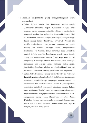 a) Dalam bidang medis dan kesehatan, cacing tanah