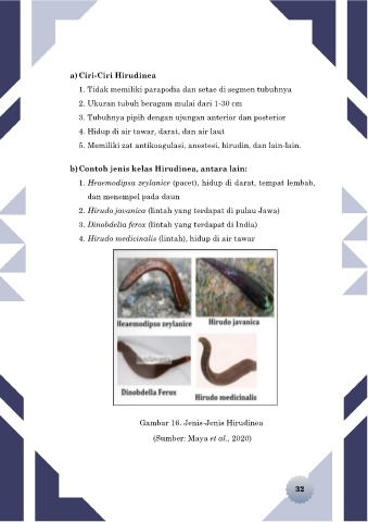 b) Contoh jenis kelas Hirudinea, antara lain: