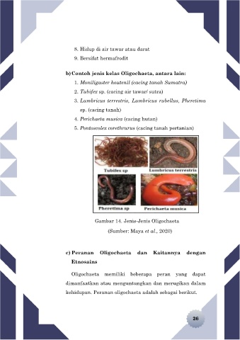 b) Contoh jenis kelas Oligochaeta, antara lain: