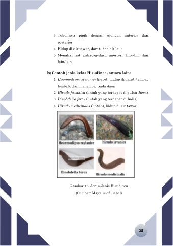 b) Contoh jenis kelas Hirudinea, antara lain:
