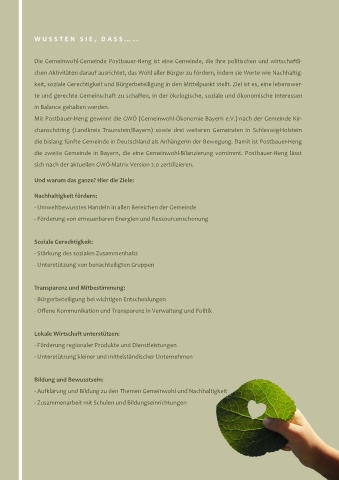 Die Gemeinwohl-Gemeinde Postbauer-Heng ist eine Gemeinde, die ihre politischen und wirtschaftli-