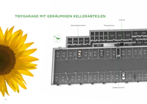 TIEFGARAGE MIT GERÄUMIGEN KELLERABTEILEN Aufzug Kellerabteile Süd