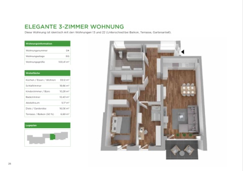 Diese Wohnung ist identisch mit den Wohnungen 13 und 22 (Unterschied bei Balkon, Terrasse, Gartenanteil). Diese Wohnung ist identisch mit den Wohnungen 14 und 23 (Unterschied bei Balkon, Terrasse, Gartenanteil).
