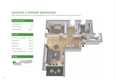 Diese Wohnung ist identisch mit den Wohnungen 18 und 27 (Unterschied bei Balkon, Terrasse, Gartenanteil).