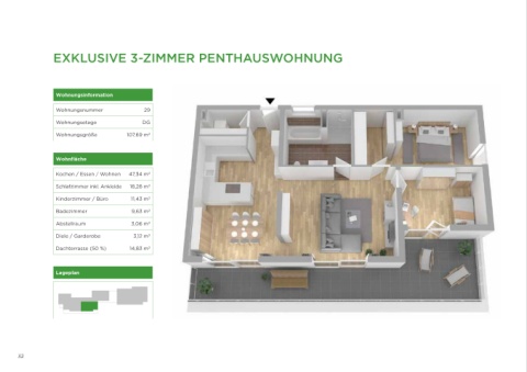 Wohnungsgröße 107,69 m 2 Wohnungsgröße 108,12 m 2