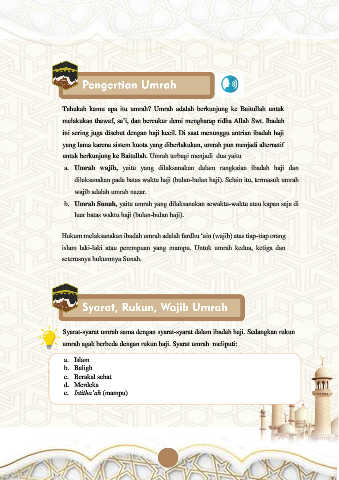 Syarat-syarat umrah sama dengan syarat-syarat dalam ibadah haji. Sedangkan rukun