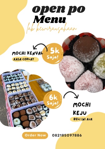 open po Menu lab kewirausahaan 5k mochi kenyal Saja! rasa coklat 6k Saja! mochi keju Beli Ini aja Order Now 082185097886