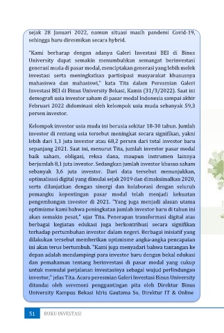 investor," jelas Tita. Acara peresmian Galeri Investasi Binus University