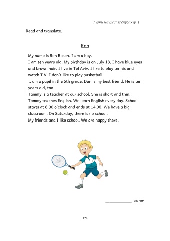 and brown hair. I live in Tel Aviv. I like to play tennis and