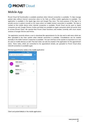 cached on the mobile device when Internet connection is available. Provet Cloud can be used on Apple