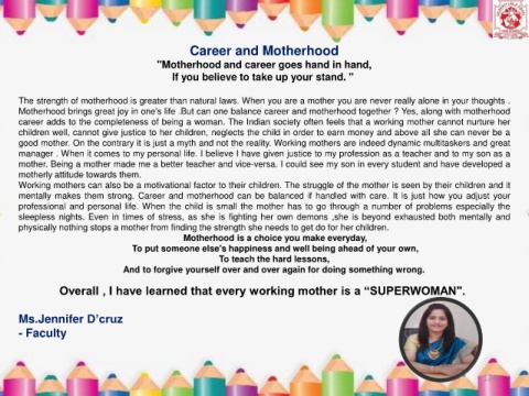 Overall , I have learned that every working mother is a “SUPERWOMAN".