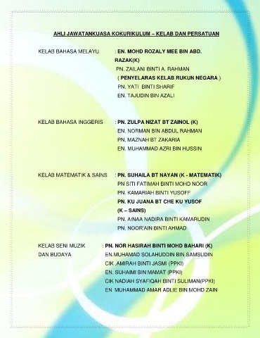 AHLI JAWATANKUASA KOKURIKULUM – KELAB DAN PERSATUAN