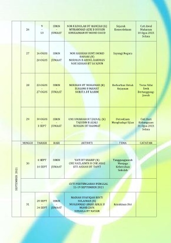 SEPTEMBER 2021 CUTI PERTENGAHAN PENGGAL
