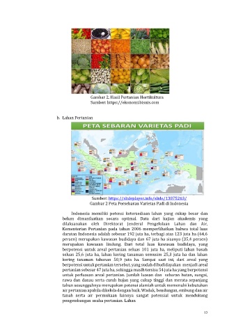 berpotensi untuk areal pertanian seluas 101 juta ha, meliputi lahan basah