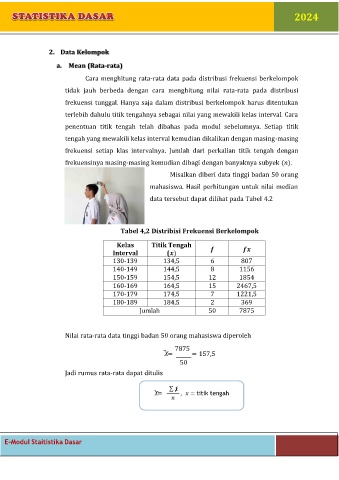Nilai rata-rata data tinggi badan 50 orang mahasiswa diperoleh