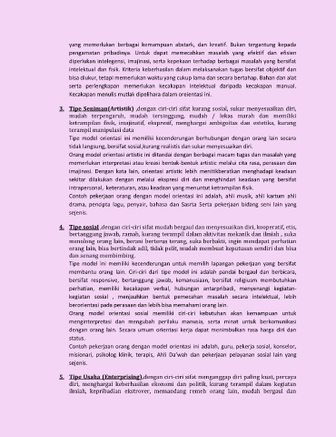 Orang model orientasi artistic ini ditandai dengan berbagai macam tugas dan masalah yang