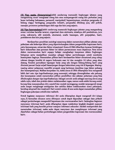 (5) Tipe usaha (Enterprising),lebih cenderung memasuki lingkungan jabatan yang