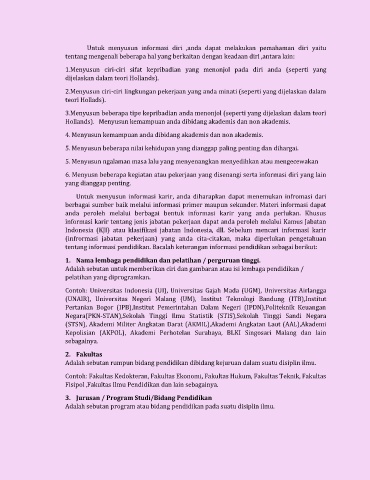 Hollands). Menyusun kemampuan anda dibidang akademis dan non akademis.
