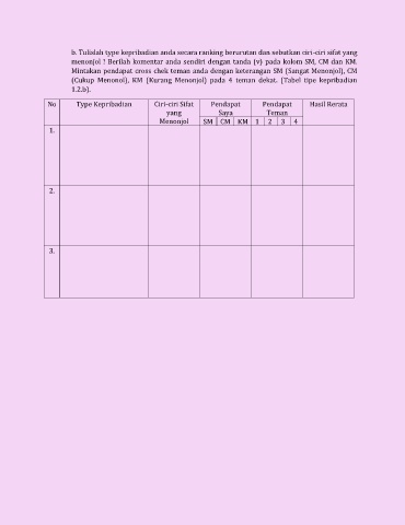 b. Tulislah type kepribadian anda secara ranking berurutan dan sebutkan ciri-ciri sifat yang