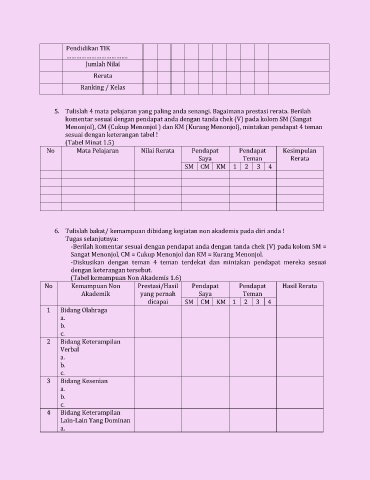 komentar sesuai dengan pendapat anda dengan tanda chek (V) pada kolom SM (Sangat