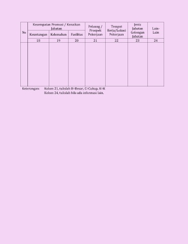 Keterangan: Kolom 21, tulislah B=Besar, C=Cukup, K=K