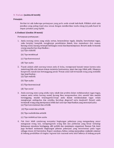 Berikut ini ada beberapa pertanyaan yang perlu anda simak baik-baik. Pilihlah salah satu