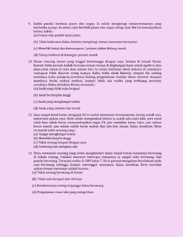 10. Hasan seorang teman yang tinggal bertetangga dengan saya. Selama di rumah Hasan