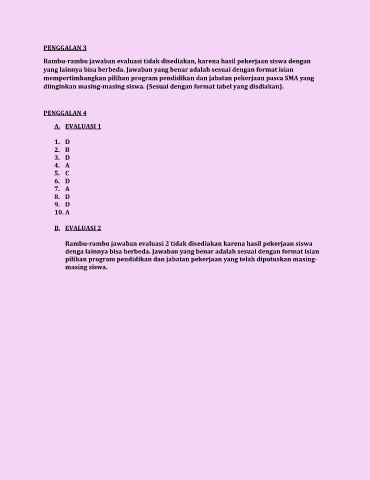 Rambu-rambu jawaban evaluasi tidak disediakan, karena hasil pekerjaan siswa dengan