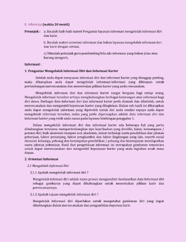 b. Bacalah materi orientasi informasi dan bahan layanan mengelolah informasi diri