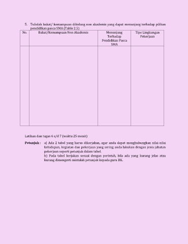 pendidikan pasca SMA (Table 2.5)