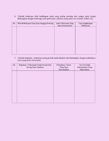 Hubungkan dengan beberapa jenis pekerjaan / jabatan yang anda cita-citakan! (Tabel 2.6).