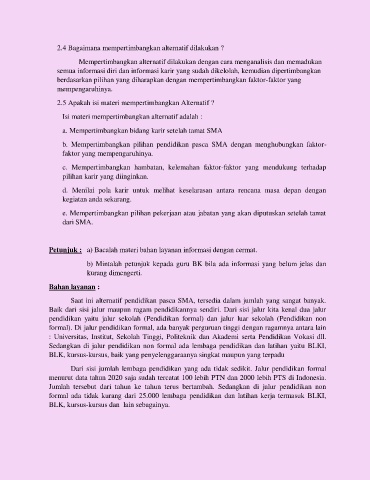 b. Mempertimbangkan pilihan pendidikan pasca SMA dengan menghubungkan faktor-