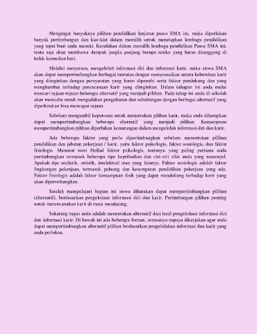 (alternatif), berdasarkan pengelolaan informasi diri dan karir. Pertimbangan pilihan penting