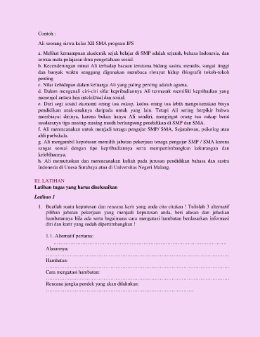g. Ali mengambil keputusan memilih jabatan pekerjaan tenaga pengajar SMP / SMA karena