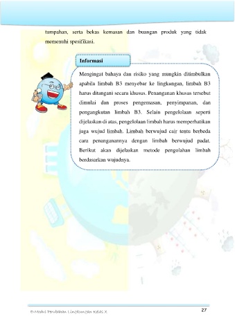 tumpahan, serta bekas kemasan dan buangan produk yang tidak