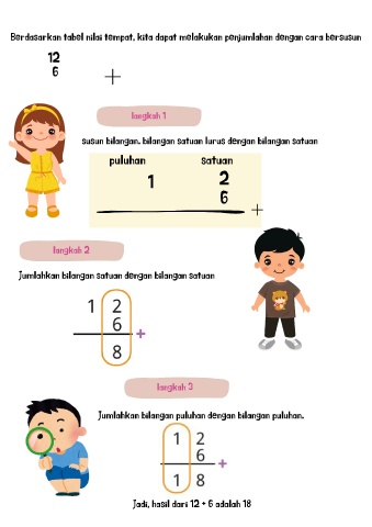 Berdasarkan tabel nilai tempat, kita dapat melakukan penjumlahan dengan cara bersusun