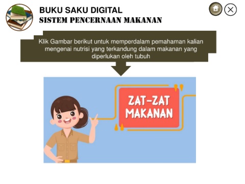 BUKU SAKU DIGITAL SISTEM PENCERNAAN MAKANAN Klik Gambar berikut untuk memperdalam pemahaman kalian mengenai nutrisi yang terkandung dalam makanan yang diperlukan oleh tubuh