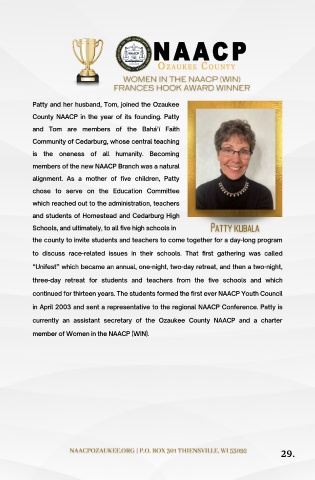 currently an assistant secretary of the Ozaukee County NAACP and a charter
