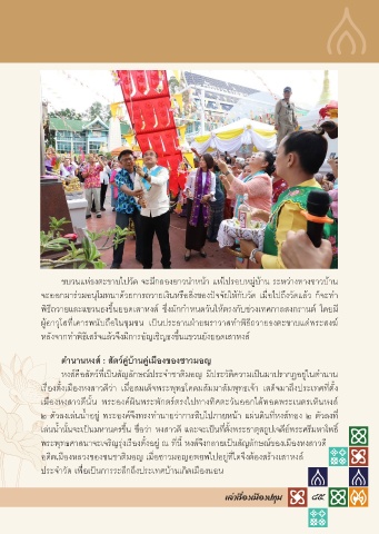 ผู้อาวุโสที่เคารพนับถือในชุมชน เป็นประธานฝ่ายฆราวาสทำพิธีถวายธงตะขาบแด่พระสงฆ์