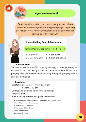 cm dan 6 cm. Jika keliling trapesium tersebut adalah 32 cm dan