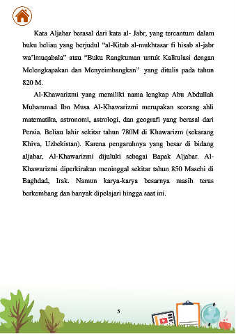 buku beliau yang berjudul “al-Kitab al-mukhtasar fi hisab al-jabr