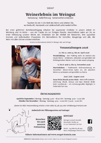 Termine & Informationen direkt im Weingut oder auf Anfrage.